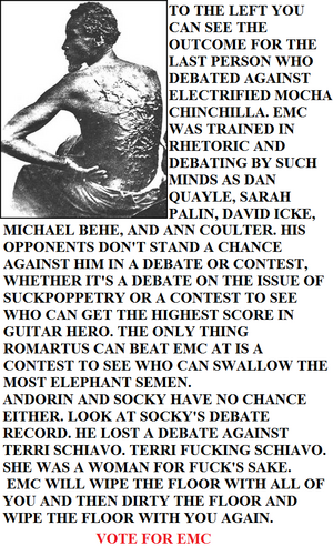*steps out of the shadows* greetings. it is i, the long lost Infor M. Ation. many of you have heard of me im sure from my mysterious disappearance in 2004. dont tell anyone, and DO NOT call the number on the back of the card. anyways, i just wanted to tell you all that my moccasins are actually made out of solid titatnium. *comically slips on a banana peel*