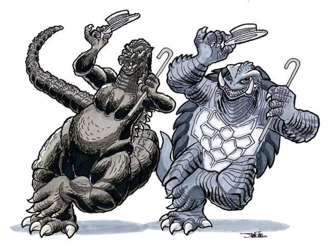 Gamera and Godzilla being joyful