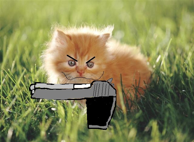 a cat with a crappily eddited in gun from MS paint