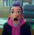 Flash forward to 2025, and the new demons hunters happen to be a trio of coked-out K-pop stars: Roomi, Boomi, and Doomi. Or at least that's what they sounded like to me. Anyways, Roomi, the main character, notices that she has a really poorly drawn tattoo of shrek on her face. She devises a virus song called "Golden", which will strengthen their war-crime into a shield so strong it will both wipe out the demons AND remove her stupid tattoo.