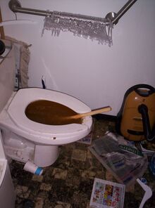 - It goes without saying that the proper way to install a new roll of toilet paper is with the flap hanging overhand. This facilitates easy grasping and accurate delivery of the exact number of individual sheets desired. Only idiots install a roll underhand, so the flap is touching the wall. Not only does it impede measured sheet access, it essentially forces you to touch an unsanitary surface—the wall. Walls are basically vertical petri dishes. If you carried an electron microscope everywhere you went (and you should), the things you'd see would make your pubes uncurl. Honest. In any event, it is considered charitable behaviour to check each of the washrooms in each of your friends' houses regularly to ensure that this rule is being observed. If a roll is installed incorrectly, by all means switch it around. But don't touch anything else in the bathroom. You don't know when the last time it was cleaned. Just change the roll and leave immediately. Even if you really have to go. You should have gone at home. That'll teach you. Take a few minutes to do the "Pee Pee Dance" behind closed doors until the urge to urinate subsides. Maybe if you'd remembered to wear your trenchcoat you could have smuggled in some bleach cleanser and a new, still plastic-wrapped toilet brush.